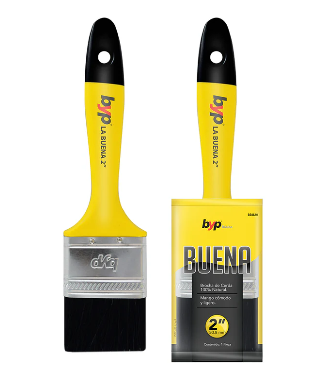 La brocha La Buena de 2 pulgadas es la herramienta estándar para cualquier proyecto de pintura. Su tamaño de 50.8 mm la hace extremadamente versátil: es lo suficientemente ancha para cubrir superficies planas rápidamente y lo suficientemente maniobrable para pintar marcos de puertas y ventanas.